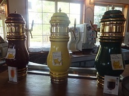 | ごんの正義(ヴァイツェン) *定番3種の中では、これが一番。(2015.7.25愛知県安城市デンパーク「ホレ・フェスト」) | ごんの愛情(アルト) *安城は「ごんぎつね」の作者・新美南吉が青春を過ごした街。定番ビールはいずれも「ごんぎつね」のごんが付いています。(同左) |