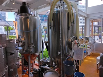 | ご好意で醸造室も見せていただきました。 2024年5月から醸造長に就任された三井慎吾さんは、大山Gビール等で 修行されていたそうで、なかなかのこだわりと、光るセンスをお持ちのようです。 |
