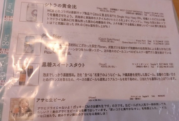 訪問時のビールラインナップです。