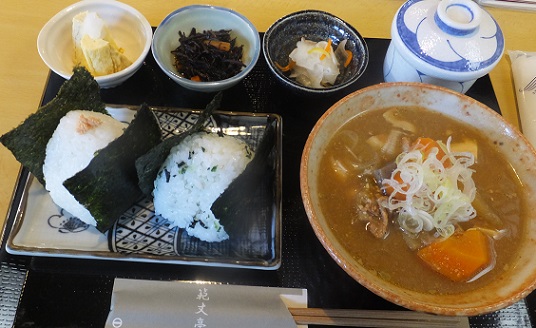 | 食事に合うビールがコンセプトで、ランチもお米にこだわった内容。 私も、「お米とお海苔にこだわったおにぎりセット(800円)」を注文。 |