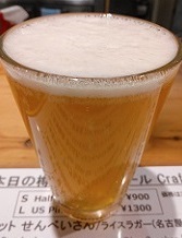 | 柳橋ピルスナー *ボヘミアンピルスナー。上品な苦みで、少しフルーティ。(2016.10.15大阪北浜「YELLOW APE CRAFT」) |