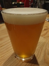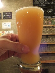 | さんじゃらっとIPA *津軽弁で「さらっと」。香りはもわっとした独特のものだが(関連サイトには「ピニャコラーダの香り」とある。)、飲むとしっかり「IPA」している。(2018.8.6京都東山「BEER Komachi」) |