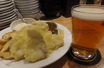 じょっぱりヘレスエクスポート *じょっぱりは津軽弁で頑固者の意味。色はやや濃いめで、モルトの味わいが深い。フィッシュ&チップスも旨かった。(2019.12.26同左) |