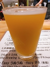 | Juicyだびょん *ニューイングランドIPA。トロピカルだが甘すぎず、どんどん進む。Alc7.5%。(2019.10.11京都東山「BEER Komachi」) |