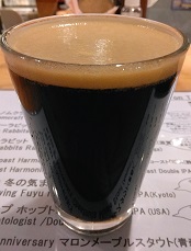 | 津軽オクトーバーフェスト *これはうまいメルツェン。幸せ。(2017.10.2京都東山「BEER Komachi」) | Ray'sミルクスタウト *まろやかなスタウト。後味にほのかにミルクが残る。ギャレスさん(右)も上機嫌。(2019.6.29同左、再飲。) |