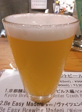 | かまりエール *「かまり」は津軽弁で匂いの意。カモミール風味の強い、変わり種のウィートエール。(2017.5.26京都東山「BEER Komachi」) |