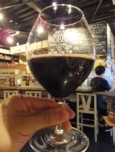 | BBA帝国スタウト *バーボン・バレルエイジド・インペリアルスタウト。グラスから凝縮された熟成香、飲むとまったり濃厚。Alc9%。(2018.8.19枚方「Hobbit」) |