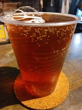 | PELOTA *珈琲店とコラボの、珈琲エール。ハイビスカスが香り、私的にはサワーエールに近い印象。【B】(2024.6.5京都蛸薬師御幸町「スタンドうみねこコト」) |