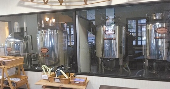 | 1階フロントロビーのすぐ隣りにある、希少な日本製のプラントで 館主の田辺さんが自ら仕込むそうです(醸造はPAMCO開業の、2000年から)。 |