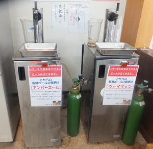 | レストランと別に軽食コーナーもあり、こっちは樽生3種類。 1杯(推定280ml)350円で飲めます。 |