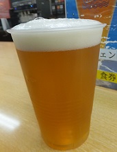| ビールはセルフサービスで、注ぐ先はプラカップ。 折角の現場なので、ジョッキかグラスで飲みたかったですが・・。 |