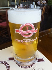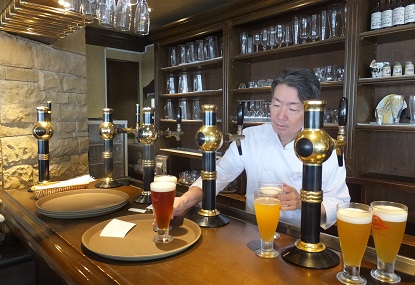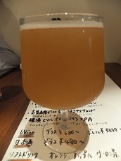 | タップは5つで、内訳は定番ビール4種(※)と、 限定ビール1種(※)(この日はサマーエール)。 どれも素晴らしいうまさです。 |