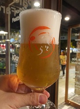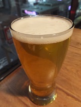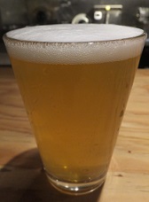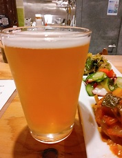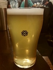 *美しい淡色透明色、香りはほんのり柑橘。Saaz Specialというホップ使用の、ぐいぐい進むピルスナー。(2018.10.5同左) |