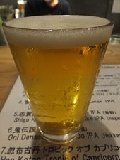 *しっかりした味わいのインディアペールラガー。ソラチエースホップを一部使用とのことだが、材木のような香りも。(2020.4.3京都四条堀川「Bungalow」) |