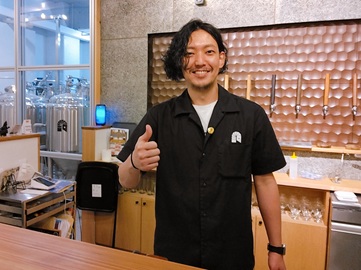 | 醸造家でオーナーの海老原(えびはら)さんは、大阪のディレイラで修行後、 開店。奥ゆかしくも、ビールへの情熱を心に秘める「沈黙の奇天烈醸造士」。 |