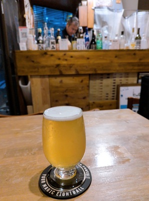| ゴールデンエール *まろやかで濃いめ。ここのビールは額面どおりにいかず、油断ならない。(2018.5.27大阪難波「CRAFT BEER LIVE」) |
