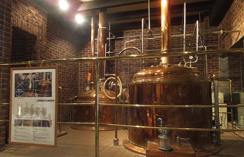 | 建物に入ると仕込みタンクがお出迎え。 ベルギービールの輸入をいち早く始めた小西酒造は 自社醸造ビールもベルジャンです。 |