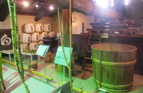 | 2階の白雪ミュージアムでは酒造りの道具が展示され、 日本酒造りの行程が紹介されています。 |