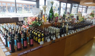 | 隣接する建物は物産店。 自社ビールや輸入ビール、日本酒などが多数並びます。 |