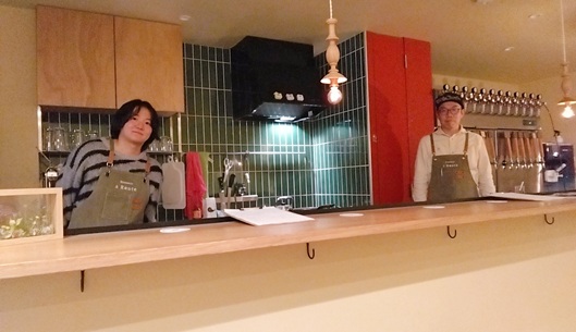 | 1階が醸造所で、2階がパブ。 醸造長の橋本壮平さん【写真右】は、元鉄道マンだそうです。 |