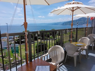 | 夏場は冷房のきいた2階の室内で飲むのが快適ですが、 春・秋は、相模湾をのぞむテラス席で飲むと、気持ち良さそう。 |