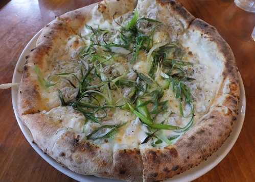 | 鎌倉ビールも良かったですが、 シラスピザ(写真)やハムステーキは絶品でした。 |