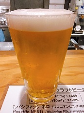 *ライトピルス(Alc4%)。ヨーロッパのホップ使用、花のような香り、物足りなさは否めない【B】(2024.7.12京都四条堀川「Bungalow」) |