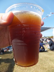 | アンバーエール (2014.10.19大阪万博公園イベント「まんパク」)*カラメルモルトが香ばしく、フルーティーだが、後になると広がるスパイシー感。コクがあり、うまい。(※) |