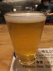 *魚は入っていないが、あごだしの風味?夏みかん香、何杯でも飲めそうなホッピーライトラガー。(2021.3.17京都東山「BEER Komachi」 ) |