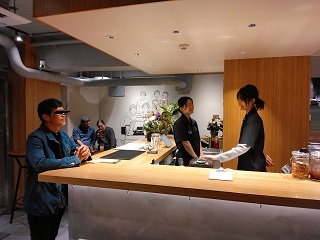 | 店内はL字のカウンターを中心に立ち席と椅子席が少々。 適度な距離感で、明るい雰囲気の店内。 |