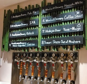 | タップは8つ。【左下】は開店当初のラインナップでしたが、 現在は6タップが自家製ビール。 |