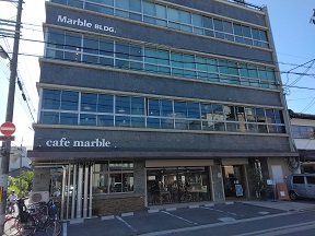 | ビールを造っているように見えない、この建物の地下で醸造。 同じ会社が運営する1階の「cafe marble」に入り、 店内の階段で地下へ。(直近の訪問日:2024年9月6日) |