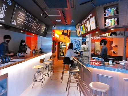 | 入口は1つで、中に入ると、左が珈琲、右がビールのカウンター。 (訪問時、ビールの店員は珈琲部門からのヘルプでした。) (訪問日:2023年4月21日) |