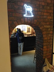 | 地下の、醸造室横の通路(↓)を進み、 小さなトンネルを抜けるとタップルームがあります。 |