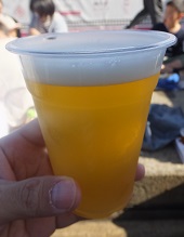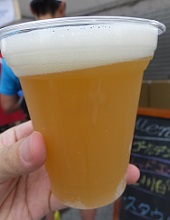 城州白(ゴールデン) *梅ビールだが爽やかで後味もよい。「じょうしゅうはく」と読む(京都の梅のブランド)。(2016.8.6宇治「クラフトビール夜市」) |