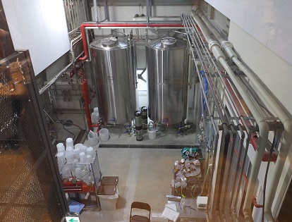 | 2階からガラス越しに醸造設備を眺めながら飲むのも良いです。 | |