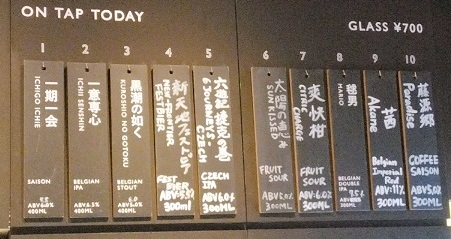 | 10あるタップは、「一期一会」や「一意専心」等の定番のほか、 限定ビールがバランス良くラインナップ。 初めての方は、まず定番ビールを飲むことをお薦めします。 (下は2023.1.21訪問時のメニュー) |