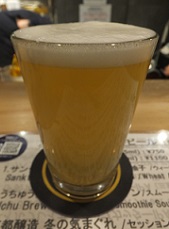 | 門外不出 *ベルジャンシングル。ドイツ産ホップと酵母由来からか、苦みより爽やかな酸味が特徴的。【A−】(2022.3.12京都タワービル地下「サンドバル」) |