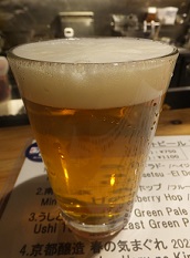 与謝野の涼風 *与謝野町産のホップ、収穫までKBCのメンバーがされたんだとか。飲みやすいペールエール。(2018.9.2京都十条「京都醸造」) |