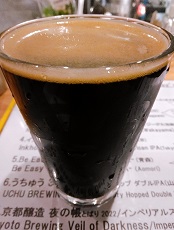 | 夜の帳2022 *Alc12%(従来の1.5倍)。甘みはおさえめで濃厚、チョコブラウニーのような深みがある【A】。(2023.1.4京都東山「BEER Komachi」) |