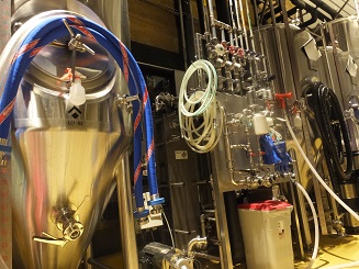 ご好意で醸造設備を見せていただきました(2020.2.19)。全体は写りませんが、1キロリットルの大きなタンクは7つもあり、想像していたより大きな規模です。 |