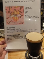 | Sorry Sakura Mochi Stout *周りの常連客にけしかけられて(?)注文。デザートだと思えばおいしくいただける。(2019.11.7京都東山「BEER Komachi」) | 裏通りのドンダバダ *ベルジャンゴールデンエール。結構甘みや、しゅわしゅわ感があり一般受けしそうだが、好みからは外れる。【B】(2022.9.23大阪難波「ビアブラボー!」) |