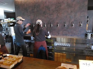 | 芝生が広がり、気候が良い日は屋外でビールを飲むのも気持ち良い。 (⇒この日のビールラインナップはこちら)。 |
