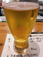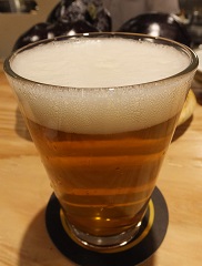 *吉野杉の香りが、クリアなケルシュによく似合う。これぞ奈良の地ビールと言える。(2021.3.31京都東山「BEER Komachi」) |