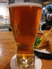 *アメリカンIPAにしては苦みがおさえめで、モルティ。飲みやすいが、私の好みからは少し外れる。(2021.11.19京都四条堀川「Bungalow」) |