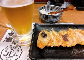 | クラフトは格安の1杯380円。2杯しか飲まなかったのに、 つまみ餃子(350円)、タンシチュー(636円)まで いただき、それでも合計1,746円(税込)。 |