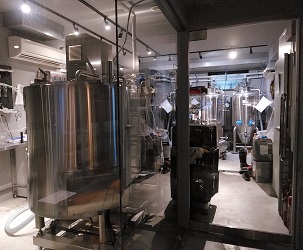 | 「イエローエイプクラフト」等のビアバーを運営する会社が2023年秋、 堺筋本町の北側に醸造所を開設。(訪問日:2024年7月23日) |