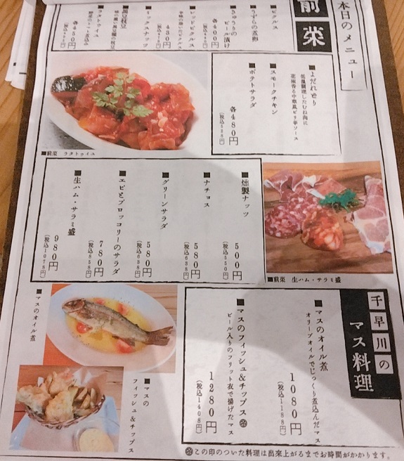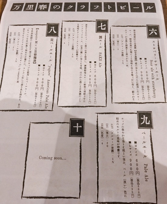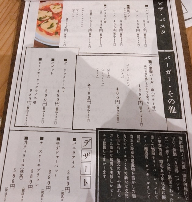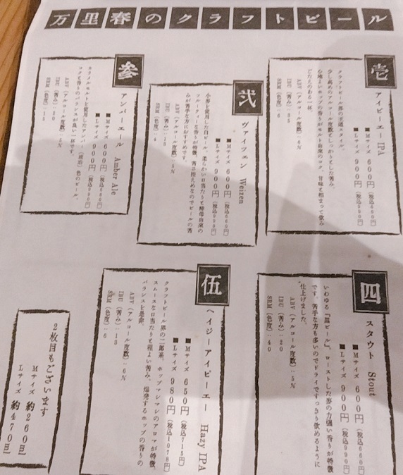 訪問時のビールとフードのメニューです。