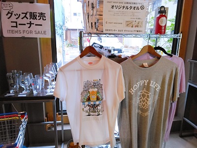 | Tシャツやグラス、タオル等が揃うグッズコーナー(↑)。 |