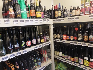 | 別室にもボトルビールがずらり(↓)。こちらは全て海外ものです。 店頭に並ぶのと合わせると、500種類ほどになるのだとか。 |